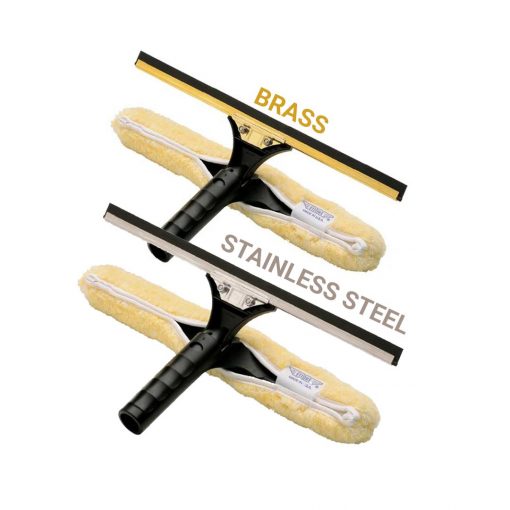 The combo tool combines quick release which makes changing channels on a squeegee easier, also includes our golden glove washer that wipes the toughest dirt, grime, and grease imaginable. One thing to keep in mind is that squeegee is 2-inches longer than the washer. Available in brass or stainless steel.